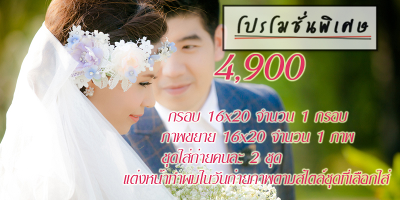 Package ประหยัด เริ่มต้นที่ 5,000 บ.ประสบการณ์ 10 ปี งานคุณภาพ มีฉากให้เลือกมากกว่า 10 แบบคุยรายละเอียดเพิ่มได้ ราคาคุยกันได้ แบ่งจ่ายเงินได้อีก
